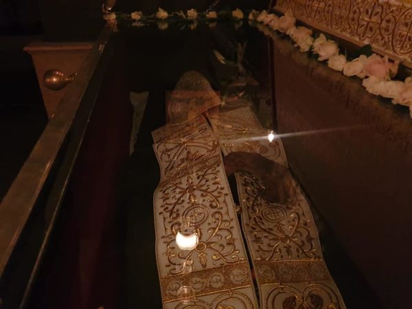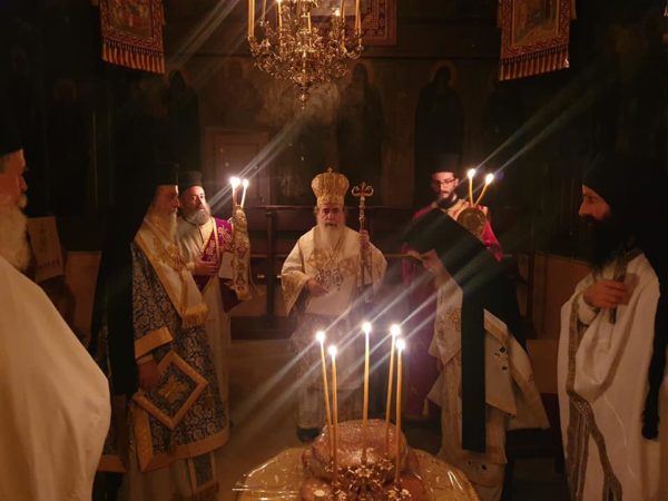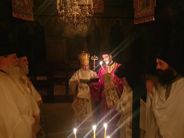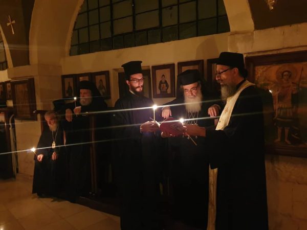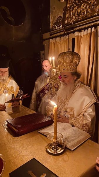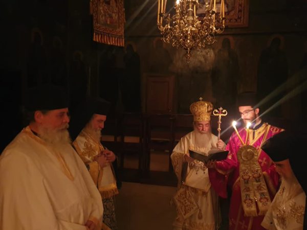 Ολονύκτια Αγρυπνία στην μνήμη του Οσίου τέλεσε ο Μακαριώτατος Πατριάρχης Ιεροσολύμων κ.κ. Θεόφιλος με συλλειτουργούς τον Σεβασμιώτατο Μητροπολίτη Καπιτωλιάδος κ. Ησυχίου, τον Σεβασμιώτατο Αρχιεπίσκοπο Κωνσταντίνης κ. Αριστάρχου και των Ιερομονάχων π. Χρυσόγονο, π. Μάρκελλο και τον Αρχιδιάκονο π. Μάρκο και του Ιεροδιακόνου π. Πατρικίου ενώ έψαλλε ο Ιεροδιάκονος π. Συμεών μετά των μοναχών της Μονής.