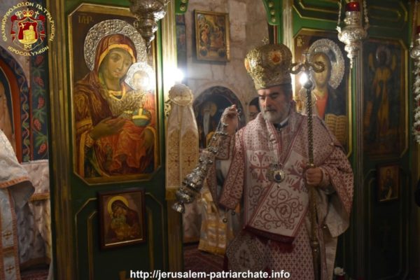 Διαρκούσης της θείας Λειτουργίας η Α.Θ.Μ. ο Πατριάρχης Ιεροσολύμων κ.κ. Θεόφιλος επισκέφθηκε τη Μονή για προσκύνηση.