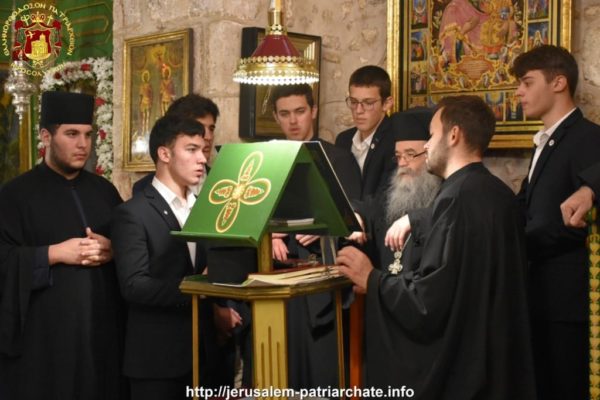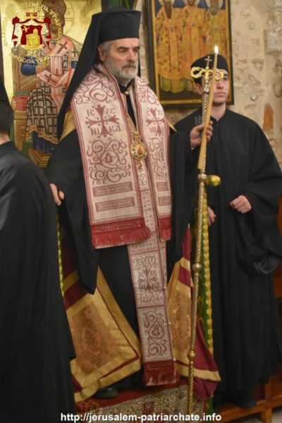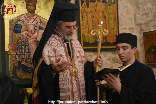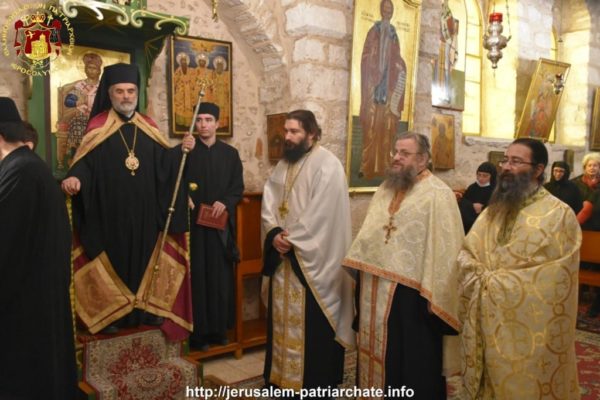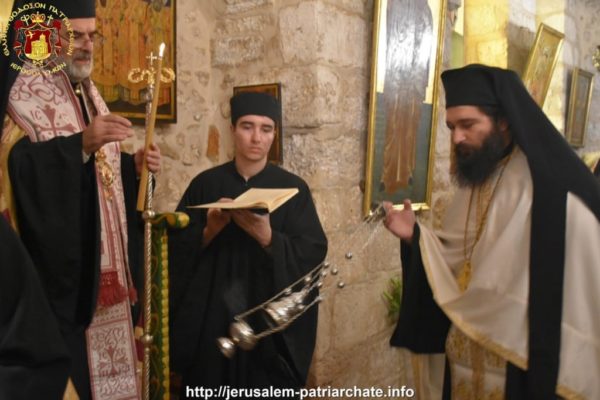 Προς τιμήν του μεγάλου αυτού στύλου και φωστήρα της μοναχικής βιοτής και του Ορθοδόξου δόγματος τελέσθηκε χθες το απόγευμα Εσπερινός και σήμερα το πρωί -ανήμερα της εορτής- θεία Λειτουργία, προεξάρχοντος του Σεβασμιωτάτου Αρχιεπισκόπου Γεράσων κ. Θεοφάνους, συλλειτουργούντων του Δραγουμάνου Αρχιμανδρίτου π. Ματθαίου, του Αρχιμανδρίτου π. Μακαρίου, του Π. Νεκταρίου και του Αρχιδιακόνου Μάρκου, ψαλλόντων του Αρχιμανδρίτου Ευσεβίου και του Βασιλείου Γκοτσοπούλου, εν συμμετοχή μοναχών, μοναζουσών και πιστών Ιεροσολυμιτών.