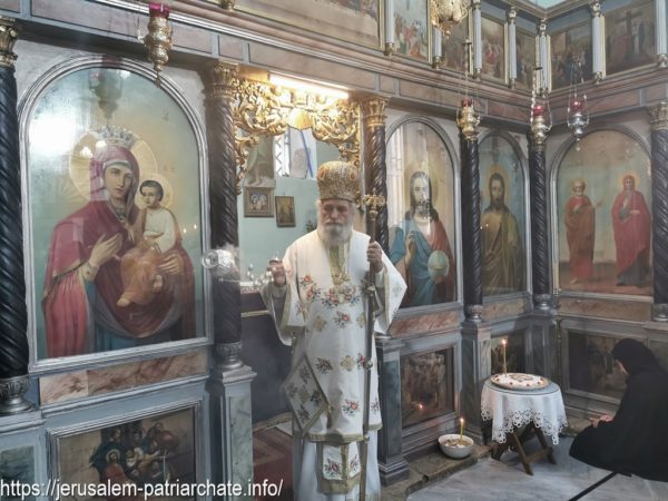 Εἰς τήν ὡς ἄνω Ἱεράν Μονήν καί πρός τιμήν τῆς Κοιμήσεως τῆς Ἁγίας Ἄννης ἐτελέσθη Ἑσπερινός ἀφ’ ἑσπέρας καί θεία Λειτουργία τήν πρωΐαν ἀνήμερα τῆς ἑορτῆς προεξάρχοντος τοῦ Σεβασμιωτάτου Μητροπολίτου Καπιτωλιάδος κ. Ἡσυχίου συλλειτουργούντων αὐτῷ τῶν Ἀρχιμανδριτῶν, Μακαρίου καί Ἰσιδώρου, τοῦ Πρεσβυτέρου π. Γεωργίου Μπαράμκη καί τοῦ Ἀρχιδιακόνου π. Μάρκου, ψάλλοντος τοῦ Ἱεροδιακόνου π. Συμεών καί μετεχόντων πιστῶν Ἱεροσολυμιτῶν, μελῶν του ποιμνίου καί προσκυνητῶν ἐκ Γεωργίας.
