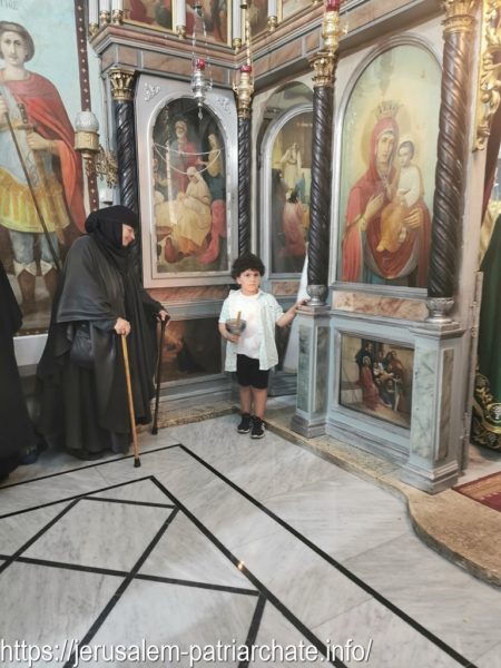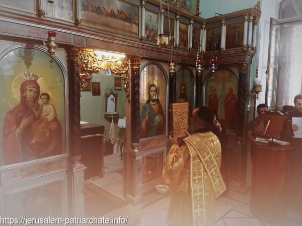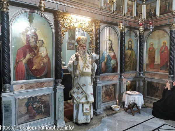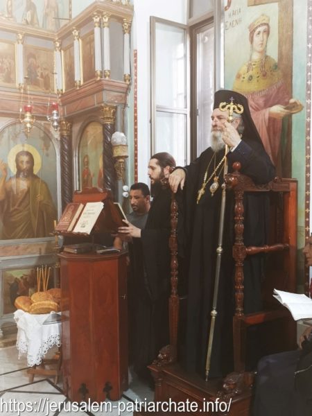 Το απόγευμα της παραμονής της εορτής, τελέσθηκε Εσπερινός και το πρωί ανήμερα της εορτής, Θεία Λειτουργία προεξάρχοντος του Σεβασμιωτάτου Μητροπολίτου Καπιτωλιάδος κ. Ησυχίου συλλειτουργούντων των Αρχιμανδριτών, Μακαρίου και Ισιδώρου, του Πρεσβυτέρου π. Γεωργίου Μπαράμκη και του Αρχιδιακόνου π. Μάρκου, ψάλλοντος του Ιεροδιακόνου π. Συμεών και μετεχόντων πιστών Ιεροσολυμιτών, μελών του ποιμνίου και προσκυνητών από την Γεωργία.