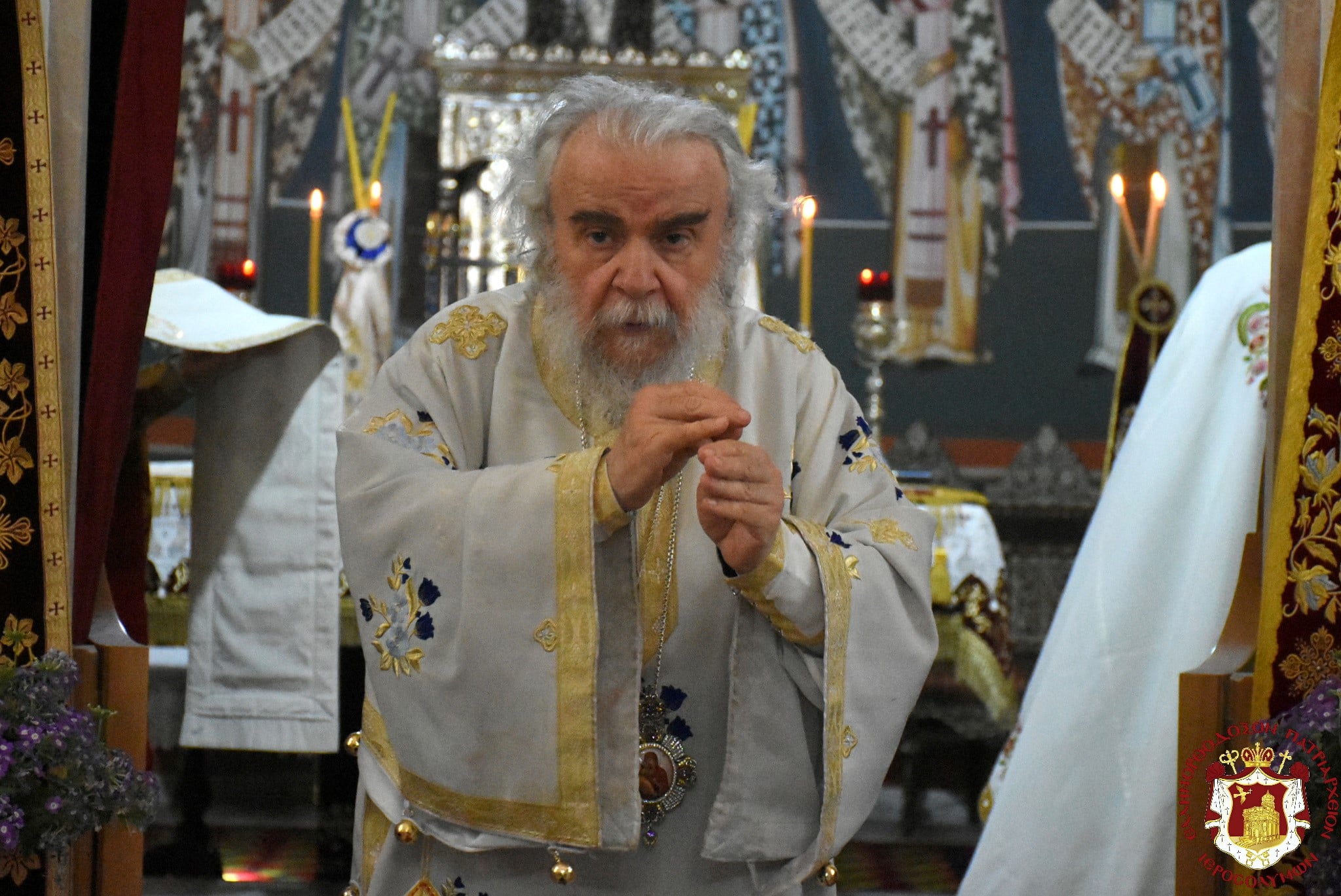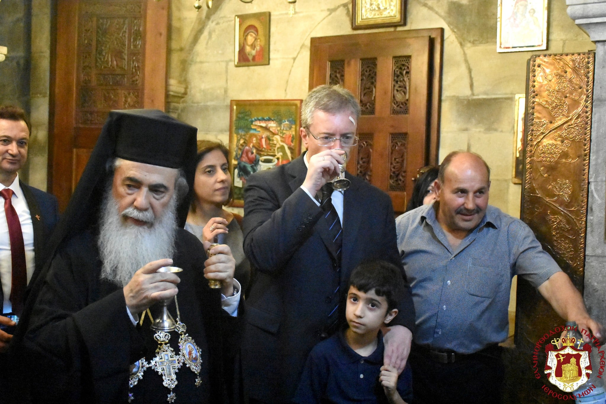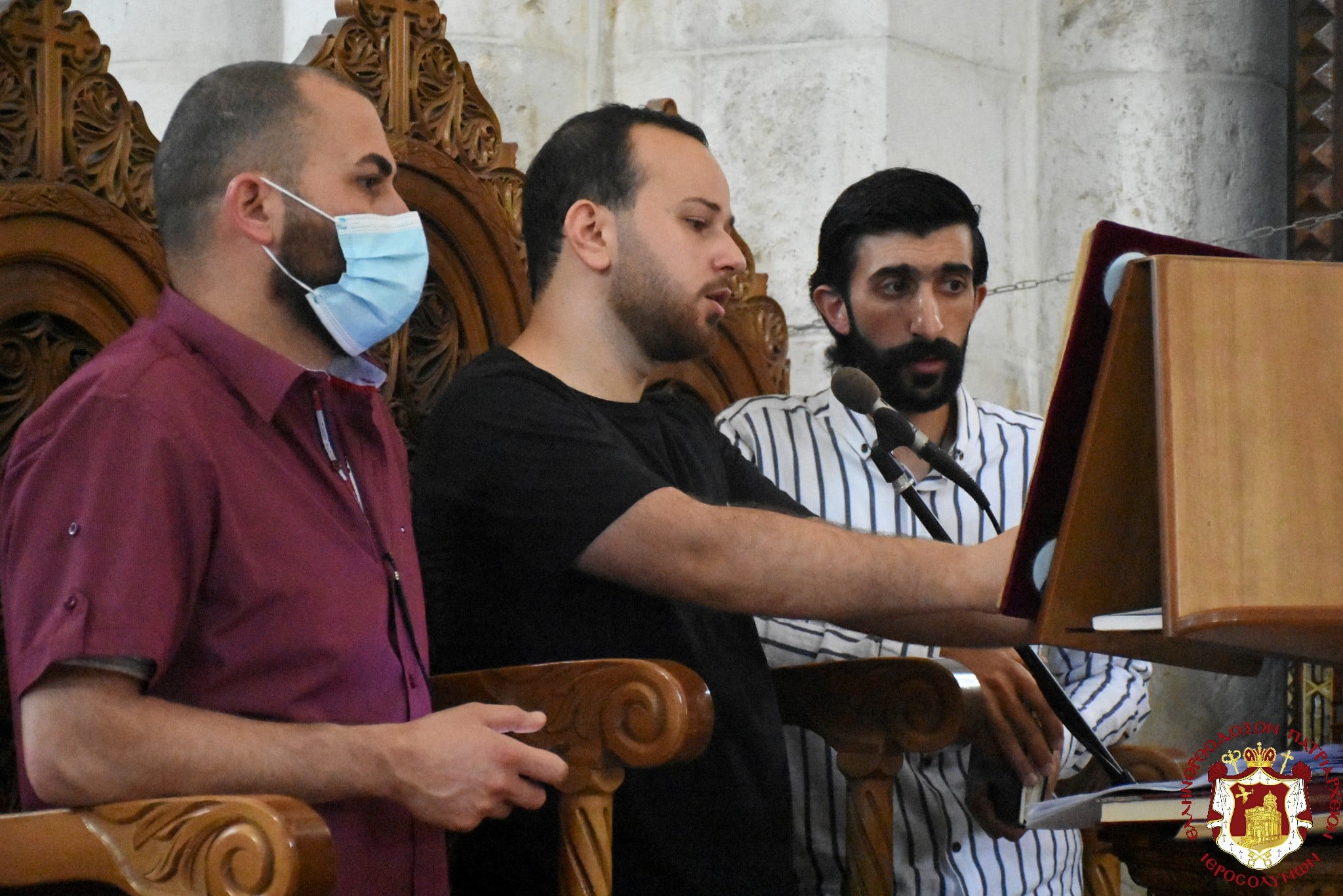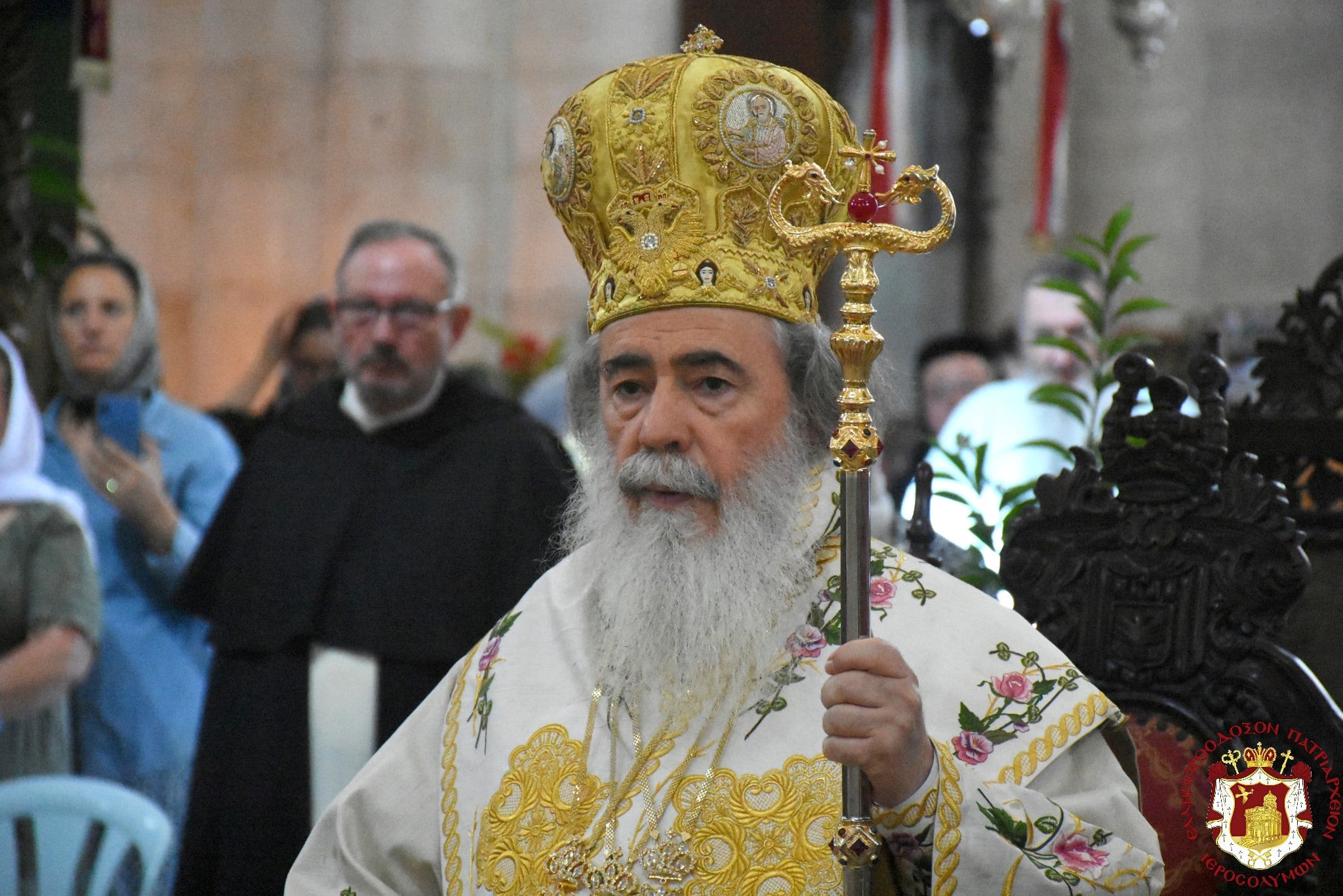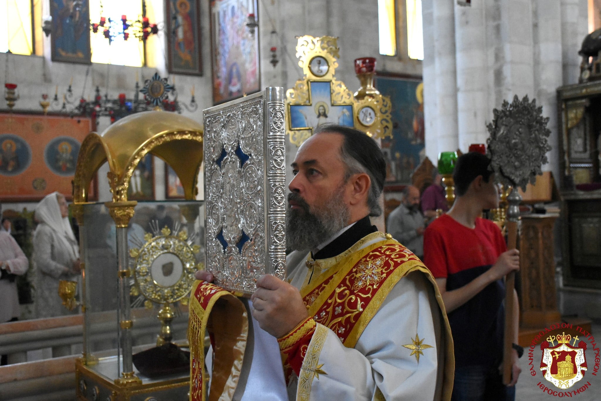 Μετά τοῦ Πατριάρχου συνελειτούργησεν ὁ Σεβασμιώτατος Μητροπολίτης Βόστρων κ. Τιμόθεος, ὁ Σεβασμιώτατος Ἀρχιεπίσκοπος Κωνσταντίνης κ. Ἀρίσταρχος Ἁγιοταφῖται Ἱερομόναχοι καί Ἀραβόφωνοι Πρεσβύτεροι καί διάκονοι ψαλλόντων τοῦ ἰατροῦ Γιακούμπι καί ἄλλων ψαλτῶν τῶν ὁμόρων ἐνοριῶν καί μετεχόντων πολλῶν πιστῶν ἰθαγενῶν καί προσκυνητῶν ἐξ Ἱερουσαλήμ καί τῶν περιοχῶν τῆς Νεαπόλεως, παρουσίᾳ τοῦ Γενικοῦ Προξένου τῆς Ἑλλάδος εἰς τά Ἱεροσόλυμα κ. Εὐαγγέλου Βλιώρα.