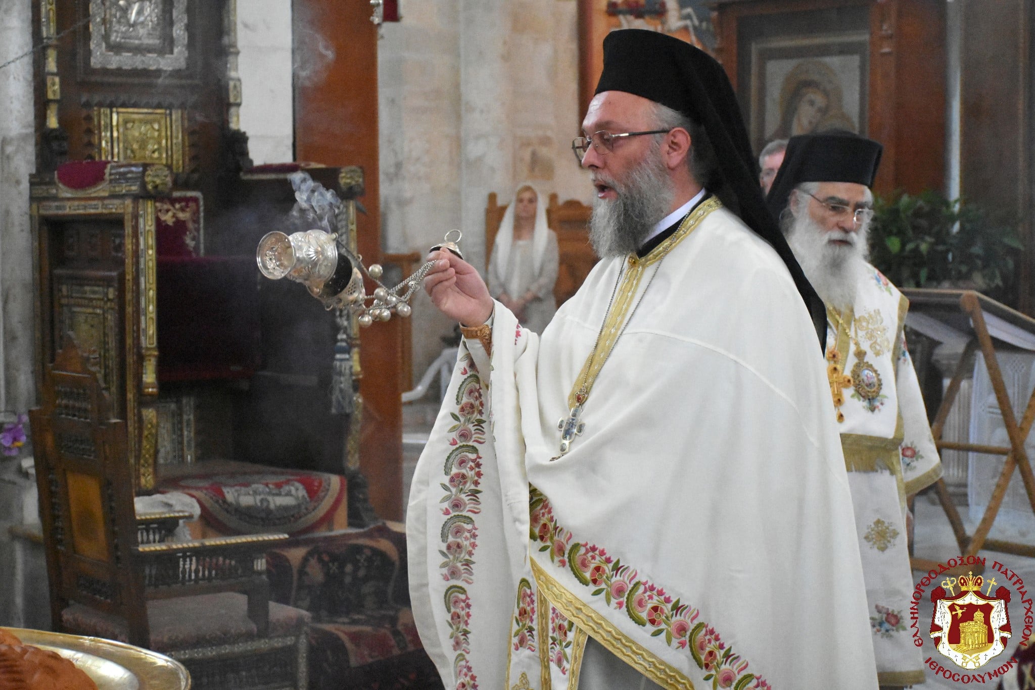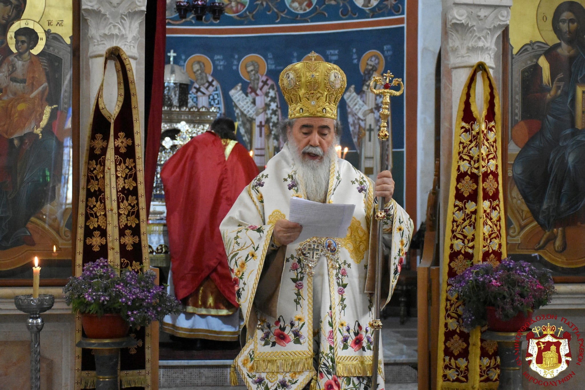 Εὐχαριστήσωμεν τῷ ἐκ Τάφου Ἀναστάντι Θεῷ καί Σωτῆρι ἡμῶν Κυρίῳ Ἰησοῦ Χριστῷ, τῷ ἀξιώσαντι ἡμᾶς ἑορτᾶσαι Πασχαλίως τήν ἑορτήν τῆς Σαμαρείτιδος γυναικός ἐν αὐτῷ τούτῳ τῷ τόπῳ τῆς πηγῆς τοῦ Ἰακώβ, ἔνθα ἡ Σαμαρεῖτις ἔπιε ἐκ τῶν πνευματικῶν ναμάτων τῆς δωρεᾶς τοῦ Θεοῦ.