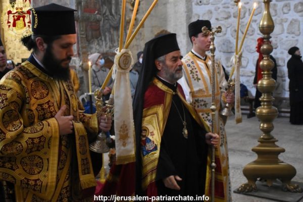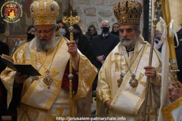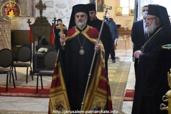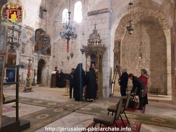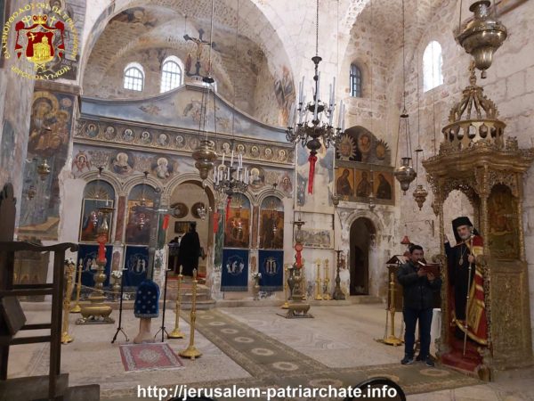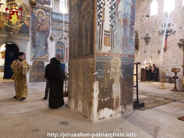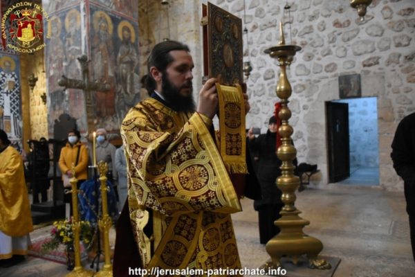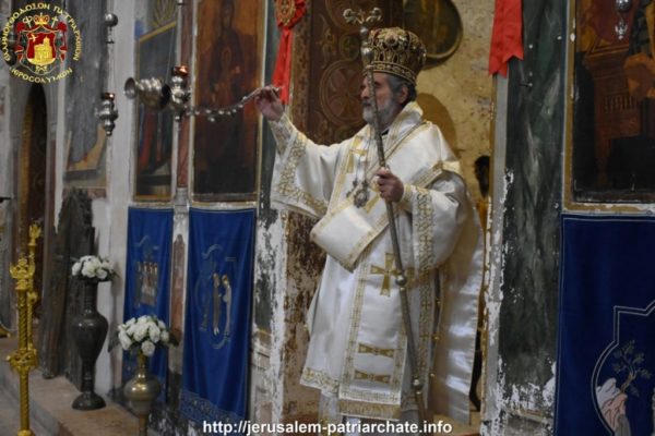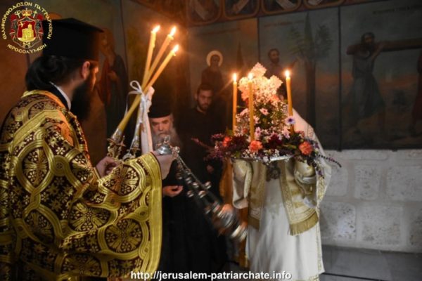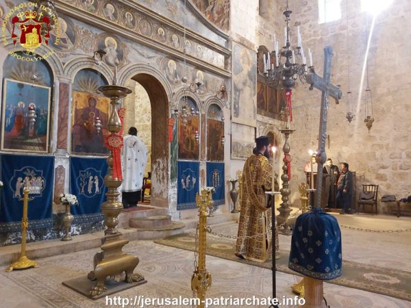 Του Εσπερινού το απόγευμα και της Θείας Λειτουργίας ανήμερα της εορτής προεξήρχε ο Σεβασμιώτατος Αρχιεπίσκοπος Γεράσων κ. Θεοφάνης, συλλειτουργούντων του ηγουμένου της Μονής Σεβασμιωτάτου Αρχιεπισκόπου Πέλλης κ. Φιλουμένου, του Δραγουμάνου Αρχιμανδρίτου π. Ματθαίου και του Ιερέως π. Νεκταρίου και διακόνων, και μετεχόντων μελών της Ελληνικής παροικίας Ιεροσολύμων και μελών του Αραβοφώνου ποιμνίου.