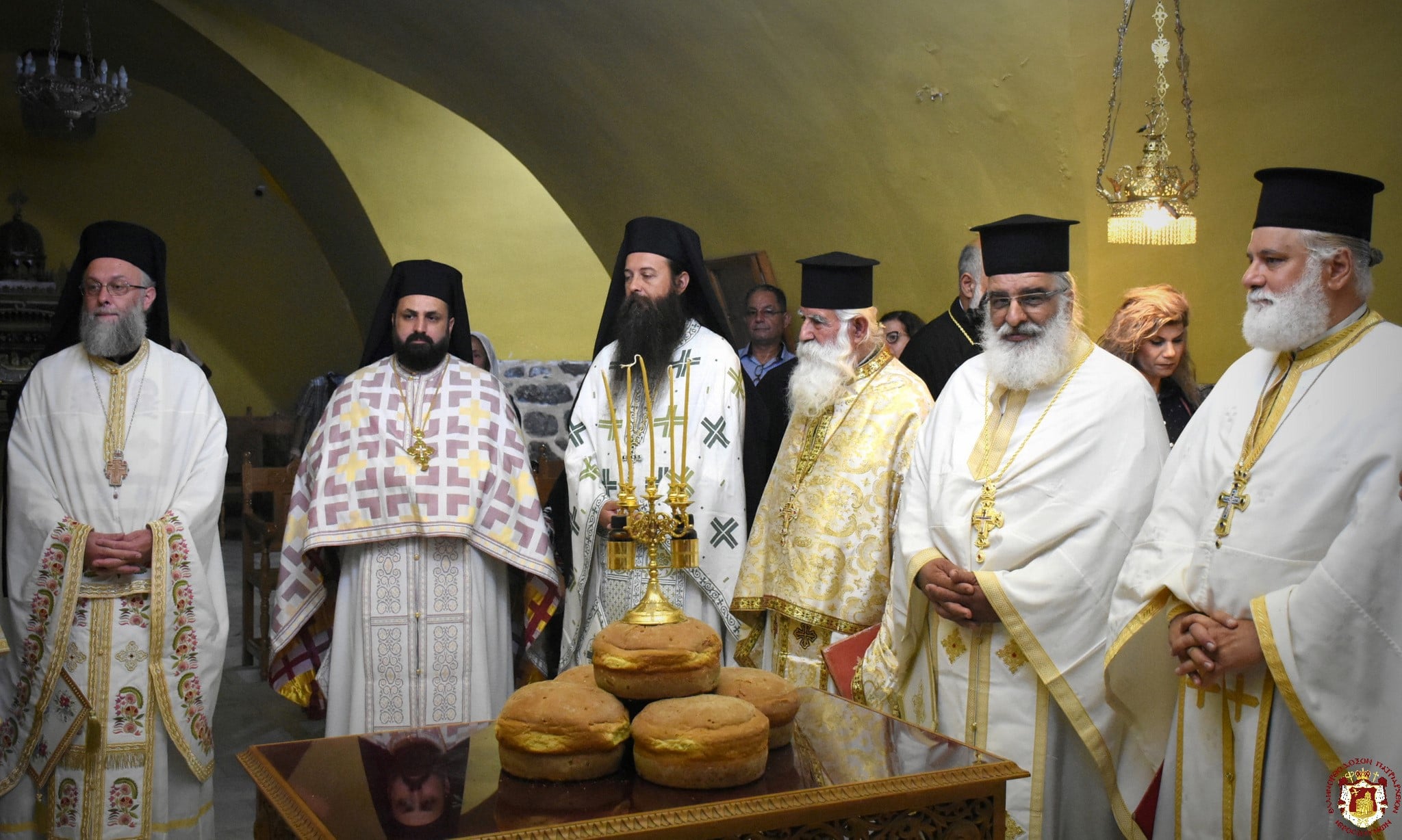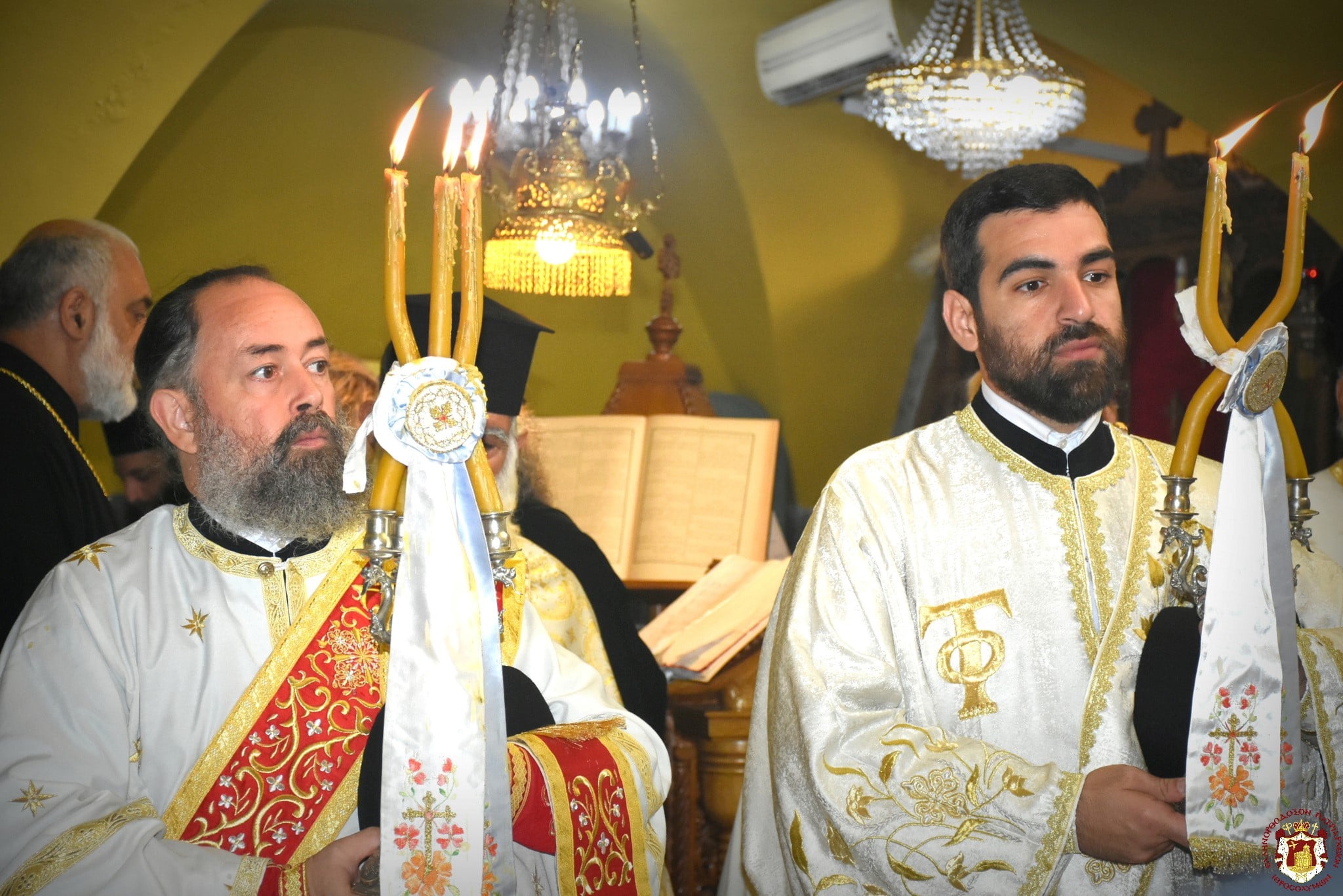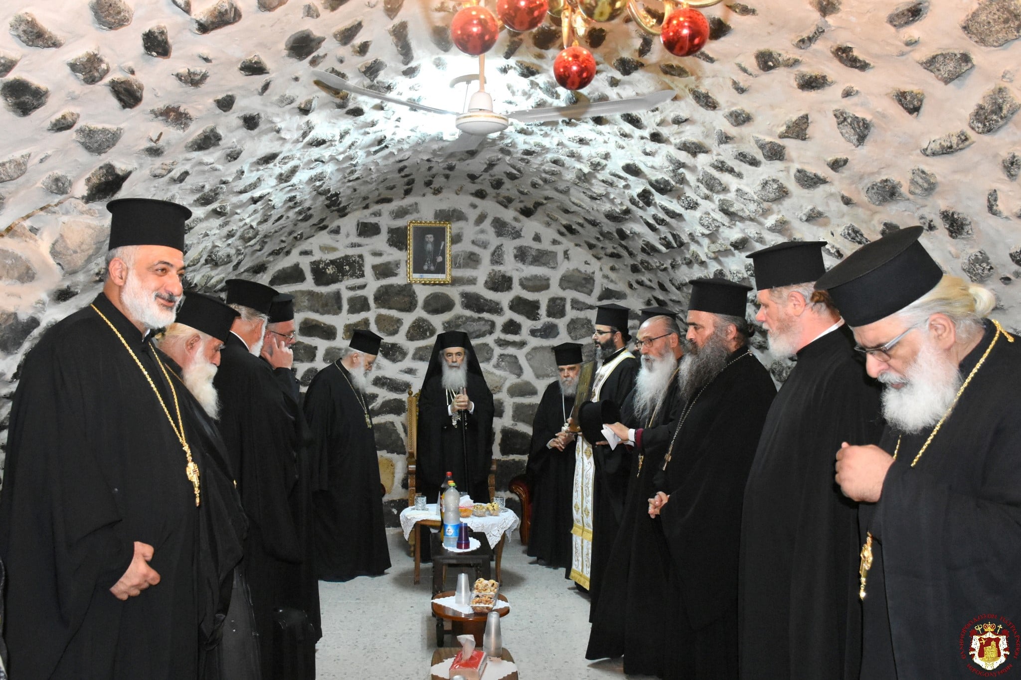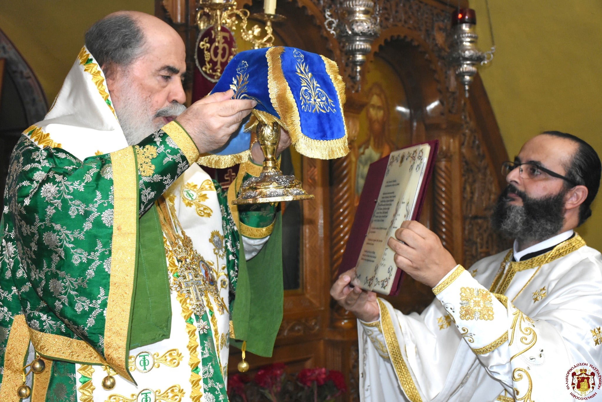Ἐνταῦθα, ἀνήμερα τῆς ἑορτῆς προεξῆρξε τῆς θείας Λειτουργίας ὁ Μακαριώτατος Πατήρ ἡμῶν καί Πατριάρχης Ἱεροσολύμων κ.κ. Θεόφιλος, συλλειτουργούντων Αὐτῷ τοῦ Σεβασμιωτάτου Μητροπολίτου Ναζαρέτ κ. Κυριακοῦ καί τοῦ Σεβασμιωτάτου Ἀρχιεπισκόπου Κωνσταντίνης κ. Ἀριστάρχου, Ἁγιοταφιτῶν Ἱερομονάχων ὡς τοῦ Γέροντος Καμαράση Ἀρχιμανδρίτου π. Νεκταρίου, καί τῶν Ἀρχιμανδριτῶν π. Χρυσοστόμου καί π. Ἀρτεμίου, Ἀραβοφώνων Πρεσβυτέρων τῆς περιοχῆς Ναζαρέτ, τοῦ Ἀρχιδιακόνου π. Μάρκου καί τοῦ Ἱεροδιακόνου π. Εὐλογίου, ψαλλούσης τῆς χορῳδίας τῆς Ἄκκρης ὑπό τόν Ἀρχιμανδρίτην π. Φιλόθεον καί μετεχόντων Ρωσοφώνων καί Ἀραβοφώνων πιστῶν.