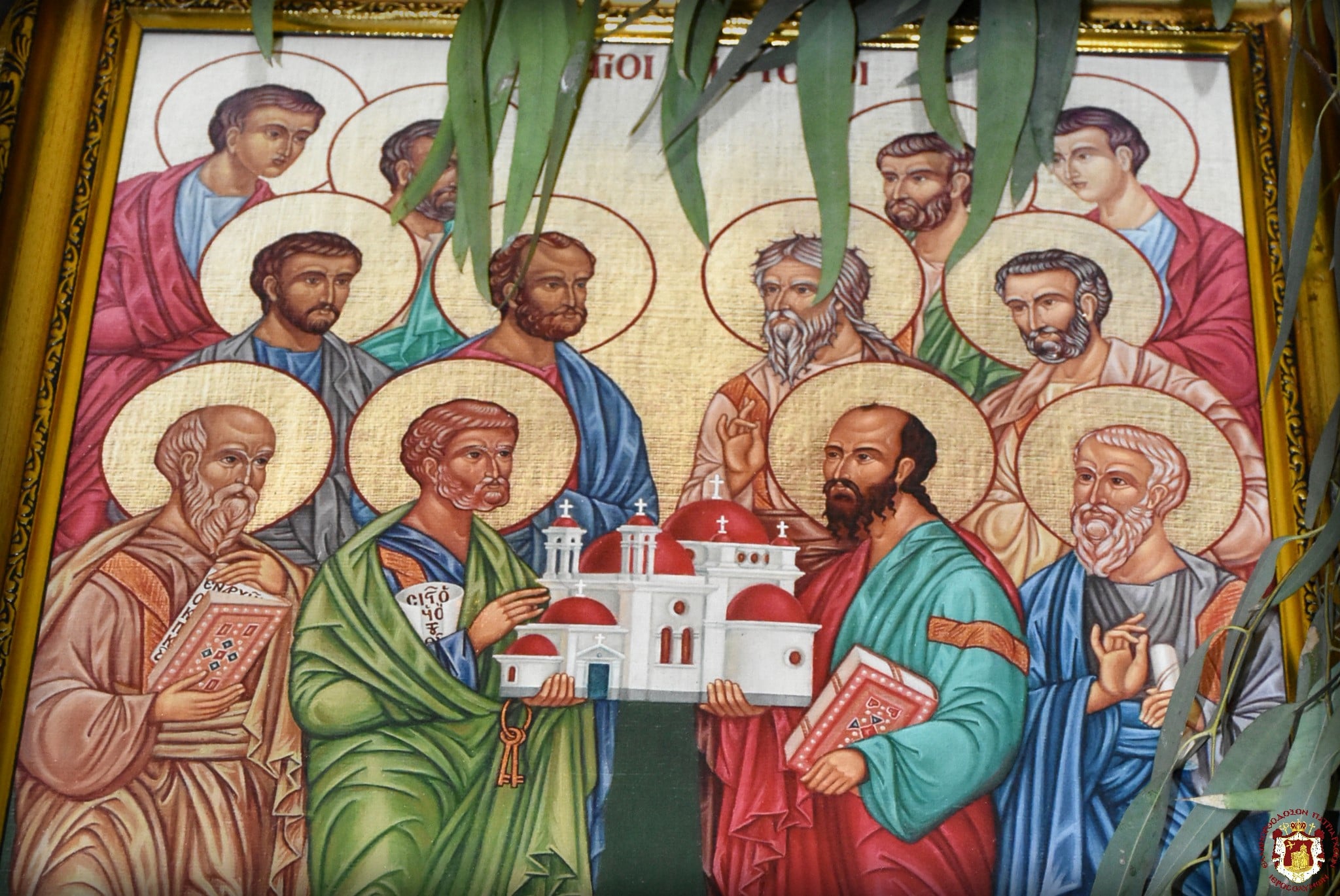 Ἡμεῖς, ἀγαπητοί μου ἀδελφοί, οἱ τιμῶντες τήν μνήμην τῶν ἁγίων Ἀποστόλων, δεηθῶμεν τοῦ Θεοῦ καί Σωτῆρος ἡμῶν Χριστοῦ καί μετά τοῦ ὑμνῳδοῦ εἴπωμεν: «Ὁ φῶς ὑπάρχων πρό πάντων τῶν αἰώνων, ὅτε κατηξίωσας πρός με τόν ἄνθρωπον, ἐπιδημῆσαι δι’ ἄφατον, φιλανθρωπίαν, καί σάρξ γενέσθαι δι’ ἀγαθότητα, τότε φῶτα δεύτερα τῆς σῆς λαμπρότητος, καί ἀστραπῆς ἀποστίλβοντα, τούς Ἀποστόλους, καί μαθητάς Σου, Σῶτερ, ἀνέδειξας, οἳ καί πεμφθέντες κτίσιν ἅπασαν, τῷ φωτί σου τῷ θείῳ κατηύγασαν, δυσωποῦντές Σε σῶσαι, καί φωτίσαι τάς ψυχάς ἡμῶν». Τῇ δέ Θεοτόκῳ καί Μητρί τοῦ Θεοῦ βοήσωμεν: «Σέ ὅπλον ἀρραγές κατ’ ἐχθρῶν προβαλλόμεθα· σέ ἄγκυραν καί ἐλπίδα τῆς ἡμῶν σωτηρίας, Θεόνυμφε, κεκτήμεθα» Ἔτη πολλά.