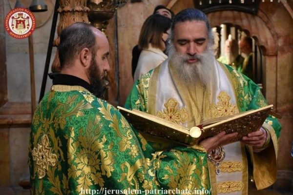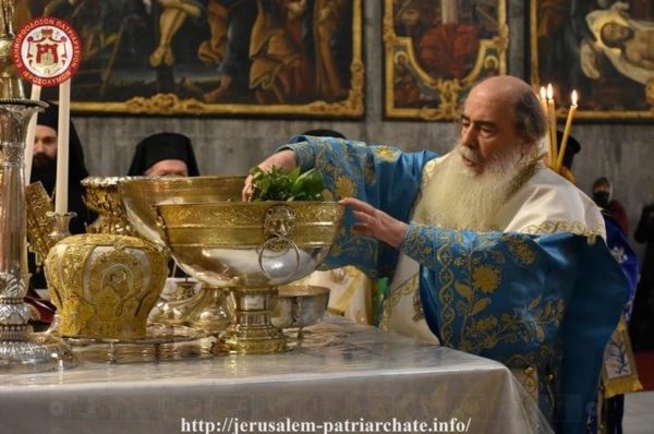 Κατ᾽ αυτήν, ο ΜακαριώτατοςΠατριάρχης Ιεροσολύμων κ.κ. Θεόφιλος, περιστοιχούμενος υπό των Αγιοταφιτών Αρχιερέων τέλεσε την τελετήν του Μεγάλου Αγιασμού στο Καθολικό του Πανιέρου Ναού της Αναστάσεως και ηγίασε τον Ναόν, τους Αρχιερείς, τους Ιερείς και ολίγους πιστούς, λόγω των μέτρων του covid – 19.