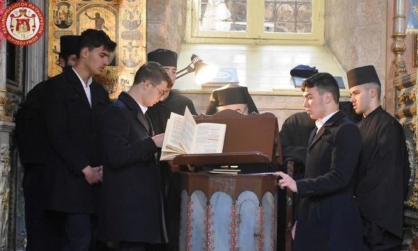 Διαρκούσης της θείας Λειτουργίας επεσκέφθη την Μονή η Α.Θ.Μ. Πατριάρχης Ιεροσολύμων κ.κ. Θεόφιλος μετά Πατέρων Αγιοταφιτών.