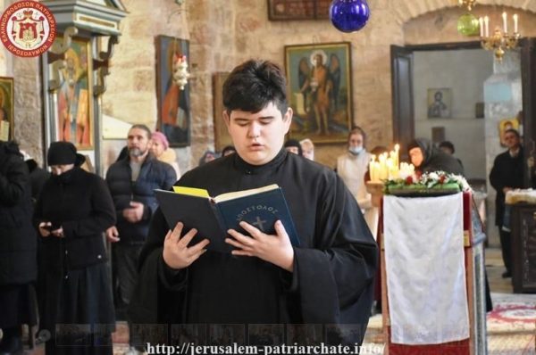 Στην ως άνω Ιερά Μονή έλαβε χώρα Εσπερινός και θεία Λειτουργία, της οποίας προεξήρχε ο Σεβασμιώτατος Μητροπολίτης Ελενουπόλεως κ. Ιωακείμ, συλλειτουργούντων του Δραγουμάνου Αρχιμανδρίτου π. Ματθαίου και των Αραβοφώνων Πρεσβυτέρων π. Νεκταρίου και π. Χαραλάμπους/ Φάραχ και του Ιεροδιακόνου Συμεών, ψαλλόντων του Αρχιμανδρίτου π. Ευσεβίου και των μαθητών της Πατριαρχικής Σχολής Σιών υπό τον κ. Βασίλειον Γκοτσόπουλον και μετεχόντων του Γενικού Προξένου της Ελλάδος εις τα Ιεροσόλυμα κ. Ευαγγέλου Βλιώρα, μοναχών και κατοίκων των Ιεροσολύμων.