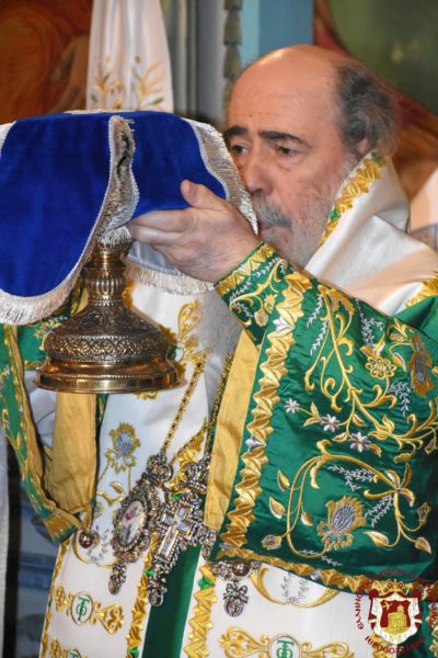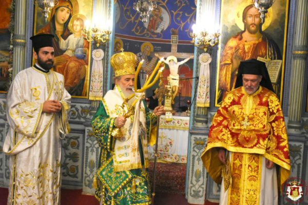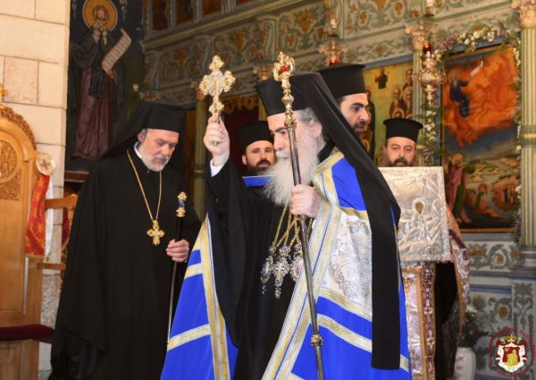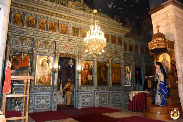 Στην Θεία Λειτουργία που τελέσθηκε στην Ιερα Μονή Προφήτου Ηλιού, προεξήρχε ο Μακαριώτατος Πατριάρχης Ιεροσολύμων κ.κ. Θεόφιλος, μετά των συλλειτουργούντων Σεβασμιωτάτων, Μητροπολίτου Καπιτωλιάδος κ. Ησυχίου, Αρχιεπισκόπων Κωνσταντίνης κ. Αριστάρχου και Πέλλης κ. Φιλουμένου, καθώς και του Σεβασμιωτάτου Μητροπολίτου Ελενουπόλεως κ. Ιωακείμ.