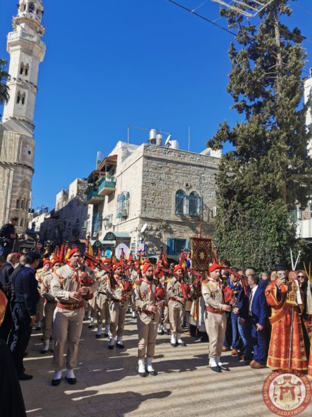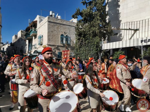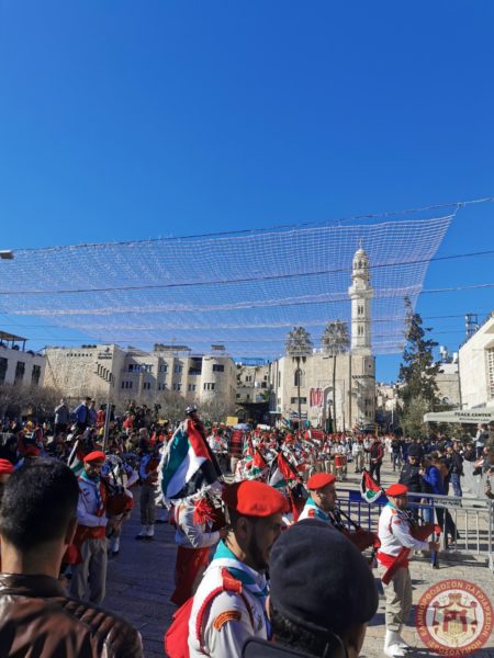 Νωρίτερα στους δρόμους της Βηθλεέμ παρέλασαν διάφορες ομάδες προσκόπων με αφορμή τη μεγάλη Δεσποτική εορτή της Γέννησης του Χριστού.