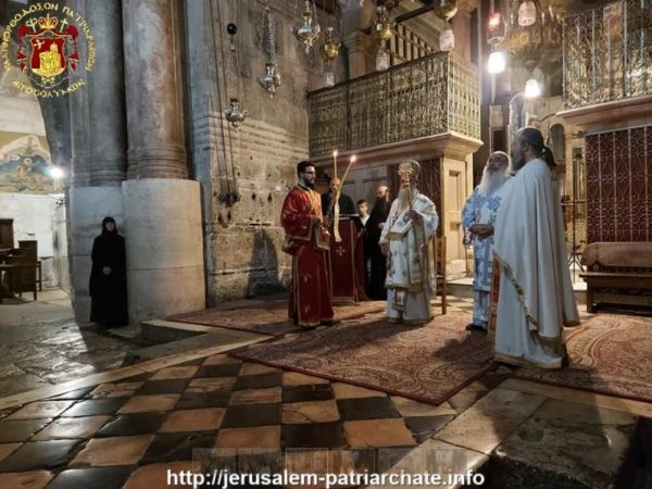 Η αγρυπνία τελέσθηκε με ευλογία και προτροπή του Μακαριωτάτου Πατριάρχη Ιεροσολύμων κ.κ. Θεοφίλου, από τους Σεβασμιώτατους Αρχιεπισκόπους Λύδδης κ. Δημήτριο και Μαδάβων κ. Αριστόβουλο.