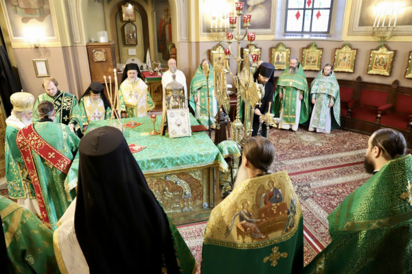 Τήν μαρτυρίαν ταύτην τῆς ἑνότητος καταγγέλλομεν καί Ἡμεῖς μετά τῶν ἀδελφῶν Ὀρθοδόξων Ἐκκλησιῶν διά τῆς ἑορτίου ταύτης θείας Εὐχαριστιακῆς Συνάξεως κατά τήν εὔσημον ταύτην ἡμέραν τῆς ἐπιφοιτήσεως τοῦ Ἁγίου Πνεύματος ἐν τῷ ὑπερῴῳ τῆς Ἱερουσαλήμ, στοιχοῦντες τῷ παραγγέλματι τοῦ θείου Παύλου: