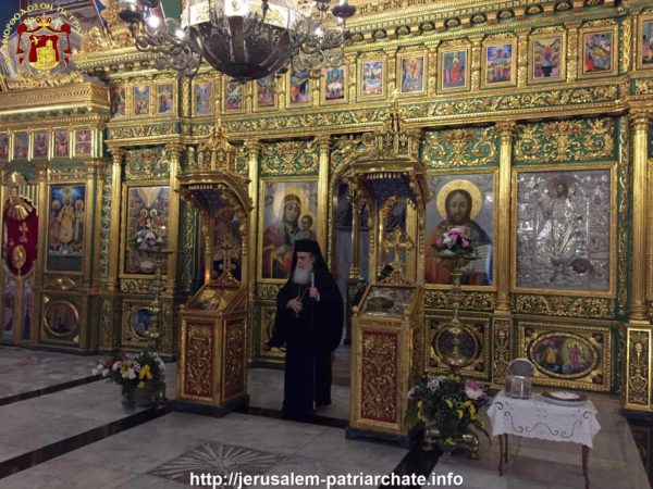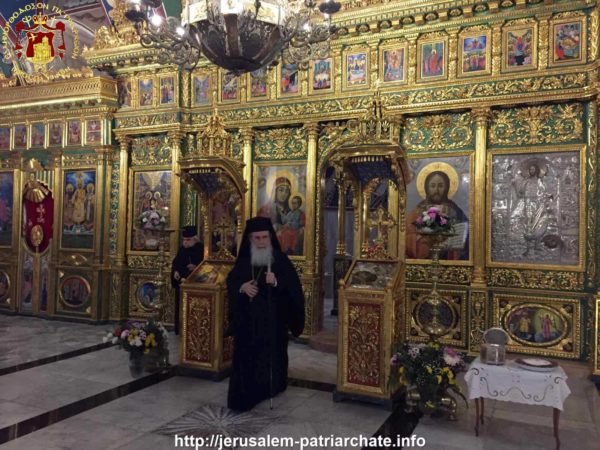 Κατά τη διάρκεια της θείας Λειτουργίας επισκέθηκε την Ιερά Μονή για προσκύνηση ὁ Μακαριώτατος Πατριάρχης Ιεροσολύμων κ.κ. Θεόφιλος μετά Πατέρων Ἁγιοταφιτῶν, τους οποίους ανέψυξε η ηγούμενος της Ιεράς Μονής Αρχιμανδρίτης π. Βαρθολομαῖος και μετά τούτων, το ἐκκλησίασμα.
