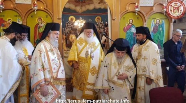 Συλλειτούργησαν οι Σεβασμιώτατοι Μητροπολίτες Ναζαρέτ κ. Κυριακός, Καπιτωλιάδος κ. Ησύχιος και ο Σεβασμιώτατος Αρχιεπίσκοπος Κωνσταντίνης κ. Αρίσταρχος και Αγιοταφίτες Ιερομόναχοι.