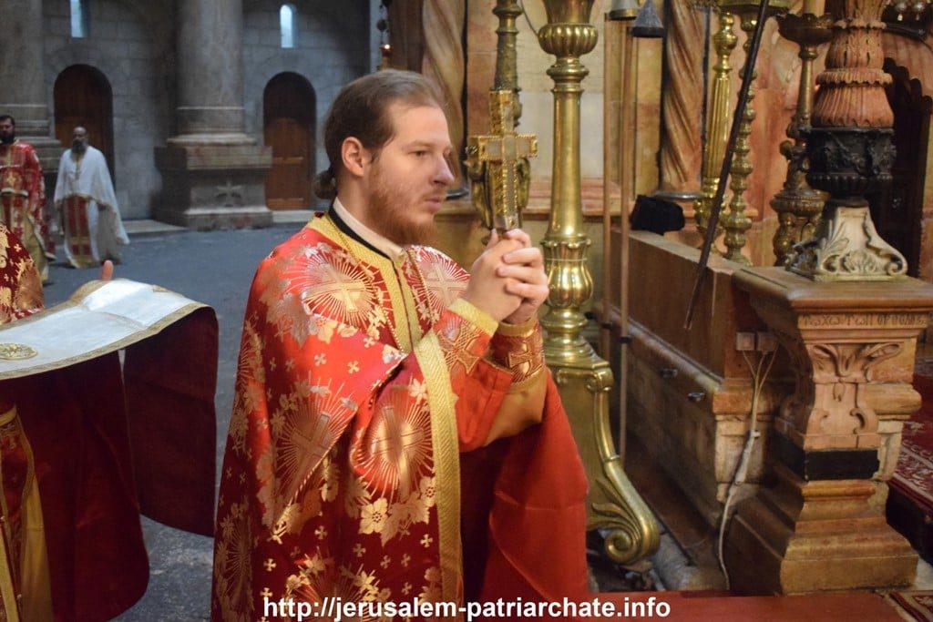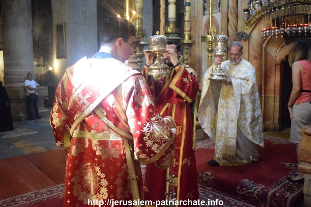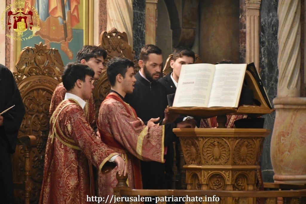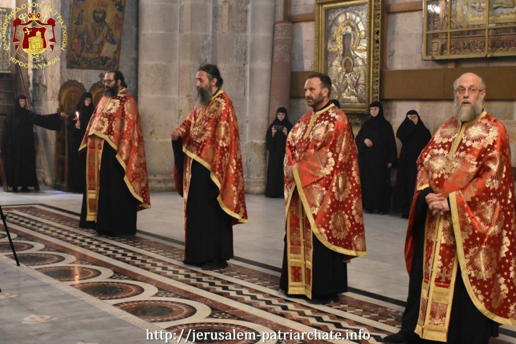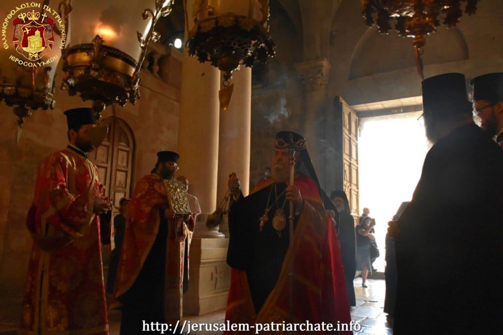 Ἡ ἑορτή αὐτή ἑωρτάσθη διά «Παρρησίας» εἰς τόν Πανίερον Ναόν τῆς Ἀναστάσεως δι’ Ἑσπερινοῦ ἀφ’ ἑσπέρας εἰς τό Καθολικόν τοῦ Ναοῦ καί διά θείας Λειτουργίας τήν πρωΐαν τῆς Κυριακῆς, εἰς τόν Πανάγιον Τάφον ὧν προεξῆρξεν ὁ Σεβασμιώτατος Μητροπολίτης Καπιτωλιάδος κ. Ἡσύχιος, συλλειτουργούντων αὐτῷ τοῦ Τελετάρχου Ἀρχιμανδρίτου π. Βαρθολομαίου καί τοῦ Ἱεροδιακόνου Πατρικίου, ψαλλούσης τῆς χορῳδίας ὑπό τόν κ. Βασίλειον Γκοτσόπουλον καί μετεχόντων πιστῶν ἐξ Ἱεροσολύμων ἐντοπίων, οὐχί δέ εἰσέτι προσκυνητῶν ὡς μή ἐλθόντων.
