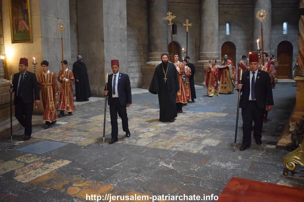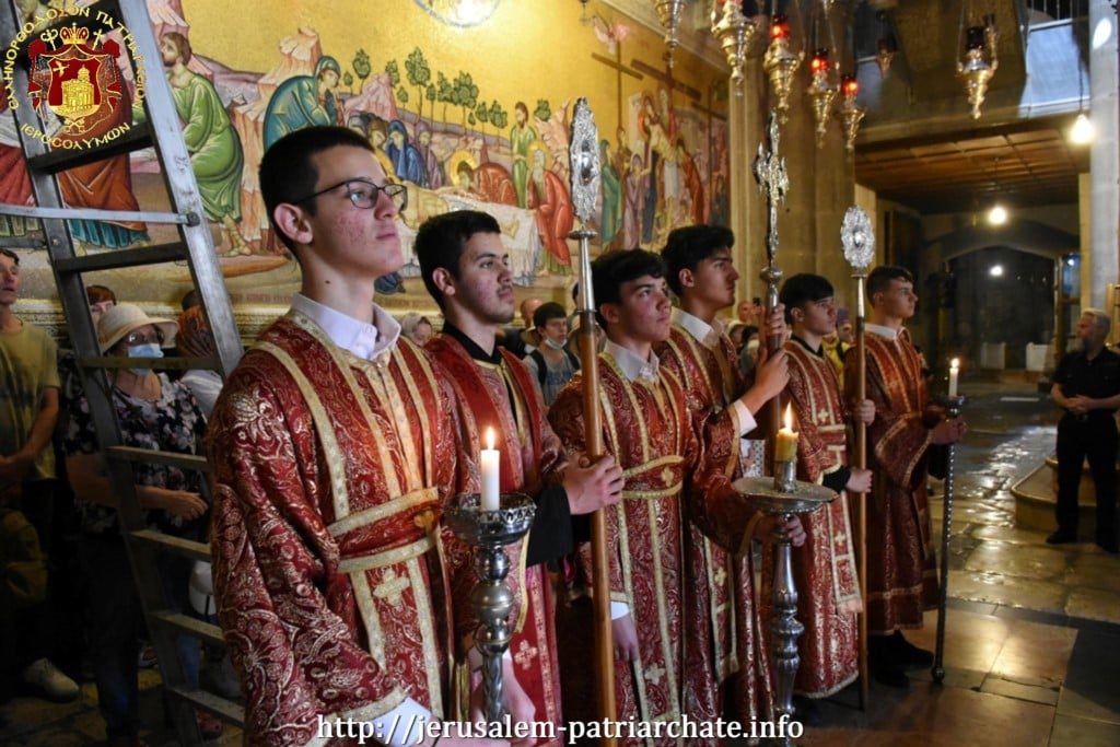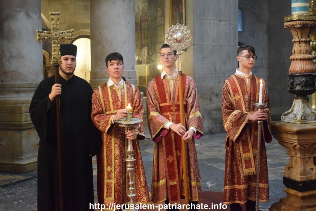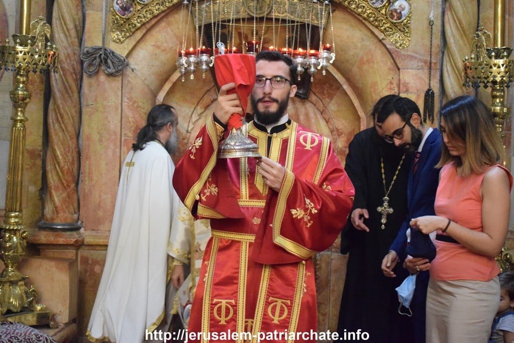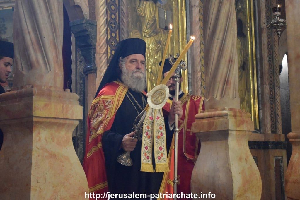Ἡ ἑορτή αὐτή ἑωρτάσθη διά «Παρρησίας» εἰς τόν Πανίερον Ναόν τῆς Ἀναστάσεως δι’ Ἑσπερινοῦ ἀφ’ ἑσπέρας εἰς τό Καθολικόν τοῦ Ναοῦ καί διά θείας Λειτουργίας τήν πρωΐαν τῆς Κυριακῆς, εἰς τόν Πανάγιον Τάφον ὧν προεξῆρξεν ὁ Σεβασμιώτατος Μητροπολίτης Καπιτωλιάδος κ. Ἡσύχιος, συλλειτουργούντων αὐτῷ τοῦ Τελετάρχου Ἀρχιμανδρίτου π. Βαρθολομαίου καί τοῦ Ἱεροδιακόνου Πατρικίου, ψαλλούσης τῆς χορῳδίας ὑπό τόν κ. Βασίλειον Γκοτσόπουλον καί μετεχόντων πιστῶν ἐξ Ἱεροσολύμων ἐντοπίων, οὐχί δέ εἰσέτι προσκυνητῶν ὡς μή ἐλθόντων.