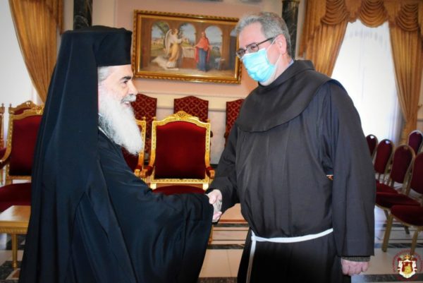 Οι πρώτοι επισκέπτες ήταν η Κουστωδία των Φραγκισκανών της Αγίας Γης, με επί κεφαλής τον Πατέρα Francesco Patton, τον οποίον υποδέχθηκε ο Πατριάρχης κ.κ. Θεόφιλος και οι παρευρισκόμενοι Αρχιερείς και ιερείς.