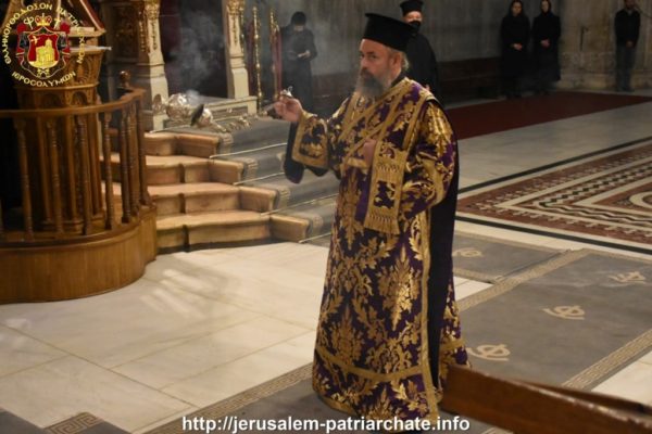 Προεξάρχοντος του Πατριάρχη Ιεροσολύμων κ.κ. Θεοφίλου εψάλη χθες, Τετάρτη 14 Απριλίου 2021, ο Μέγας Κανών, ποίημα του αγίου Ανδρέου Αρχιεπισκόπου Κρήτης του Ιεροσολυμίτου, στον μοναστηριακόν Ναόν των Αγίων Κωνσταντίνου και Ελένης.