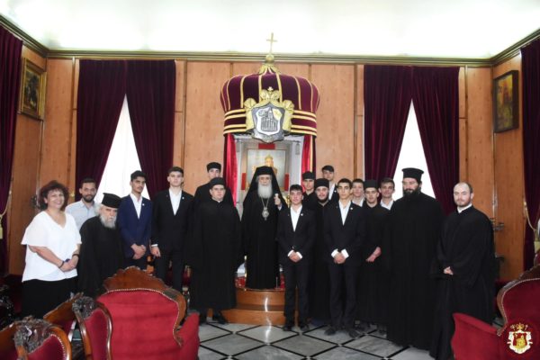 Τον Μακαριώτατο Πατριάρχη Ιεροσολύμων κ.κ. Θεόφιλο επισκέφθηκαν χθες οι απόφοιτοι και οι λοιποί ιεροσπουδαστές της Πατριαρχικής Σχολής Σιών, συνοδευόμενοι από τον Αρχιμανδρίτη π. Ματθαίο και άλλων μελών του προσωπικού της Σχολής.