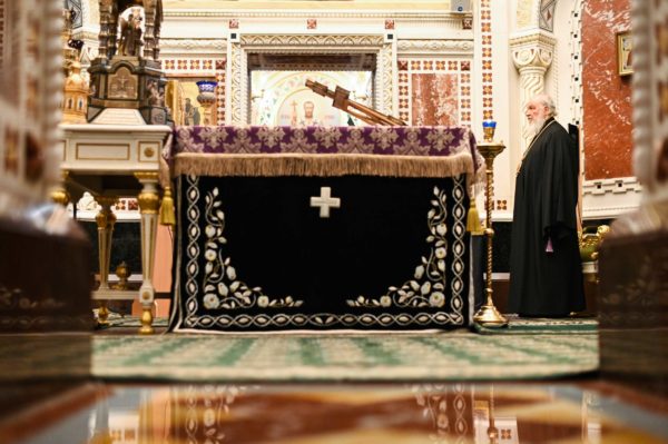 Ο Μακαριώτατος Πατριάρχης Μόσχας και πασών των Ρωσιών κ.κ. Κύριλλος συμπαραστατούμενος από Αρχιερείς της Ρωσικής Εκκλησίας προεξήρχε στην τελετή της Σταυροπροσκυνήσεως.
