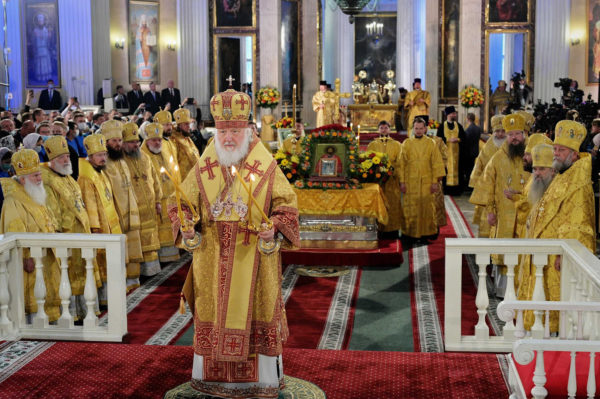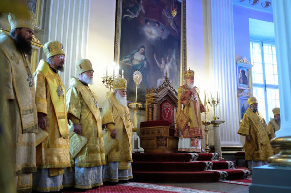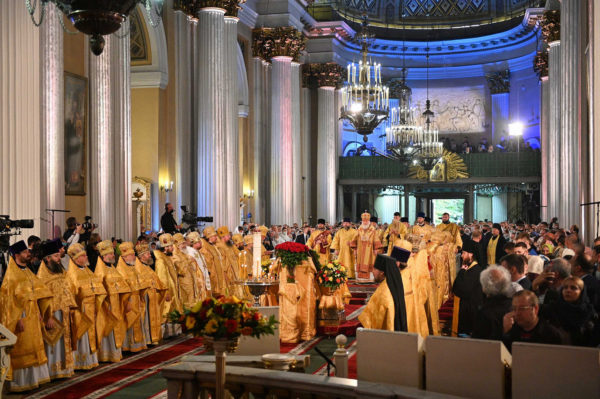 Μετά το πέρας της Θείας Συνάξεως τον Αγιώτατο Πατριάρχη Κύριλλο εκ μέρους των κληρικών και του ποιμνίου της ιεράς μητροπόλεως Αγίας Πετρουπόλεως προσφώνησε ο μητροπολίτης Αγίας Πετρουπόλεως και Λάντογκα κ. Βαρσανούφιος.