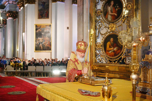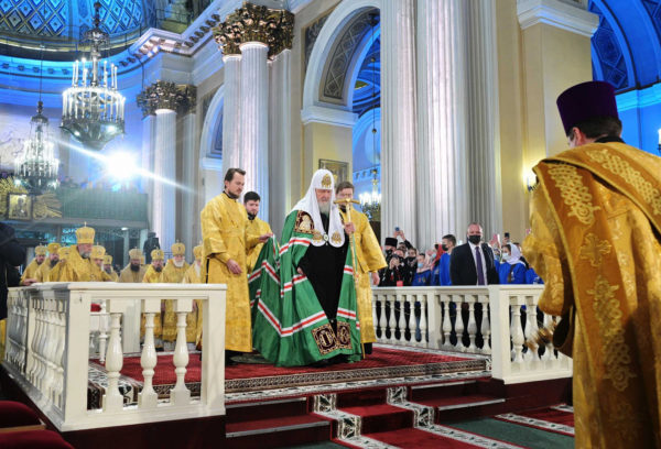 Ο Προκαθήμενος της Ρωσικής Εκκλησίας απηύθυνε στο εκκλησίασμα τον θείο λόγο και αμέσως μετά απένειμε υψηλές τιμητικές εκκλησιαστικές διακρίσεις σε ιεράρχες και κοσμικούς άρχοντες.