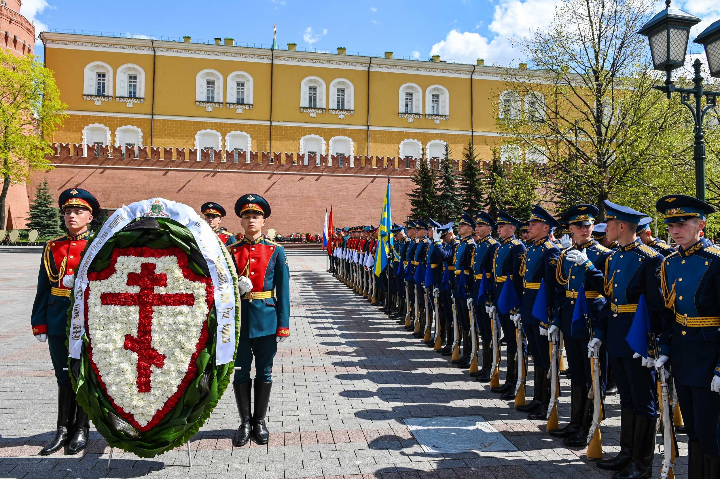 Μετά την κατάθεση στεφάνου, τηρήθηκε ενός λεπτού σιγή και ακολούθησε η ανάκρουση του Εθνικού Ύμνου της Ρωσίας από την στρατιωτική μπάντα προς τιμή των πεσόντων. Στην συνέχεια, πραγματοποιήθηκε στρατιωτική παρέλαση της φρουράς τιμής του 154ου Συντάγματος Πρεομπραζένσκι.
