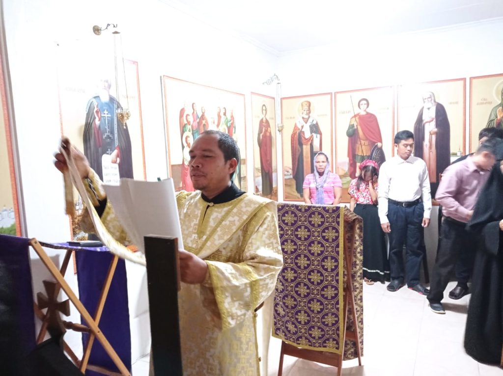 Μετά από την παράδοση των μαθημάτων ο ιερέας Μωυσής Καγκιλίγκ και οι διάκονοι Αμβρόσιος Σουμαγκάισαϊ και Νικόλαος Σαλγκάντο από κοινού με τον ιερομόναχο Κορνήλιο Μόλεφ τέλεσαν τον πλήρη ημερήσιο κύκλο των ακολουθιών της Μεγάλης Τεσσαρακοστής, ολοκληρώνοντας αυτόν με τη Θεία Λειτουργία των Προηγιασμένων Δώρων.