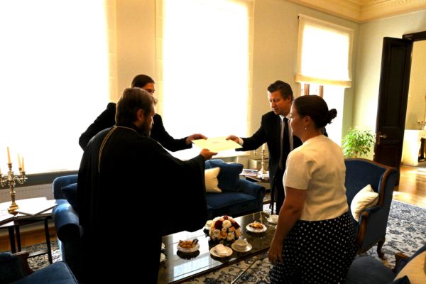 Επόμενος σταθμός του Επικεφαλής του Τμήματος Εξωτερικών Εκκλησιαστικών Σχέσεων του Πατριαρχείου της Μόσχας ήταν η έδρα της Βελγικής Πρεσβείας όπου συναντήθηκε με τον Πρέσβη Μάρκ Μίλχισεν.