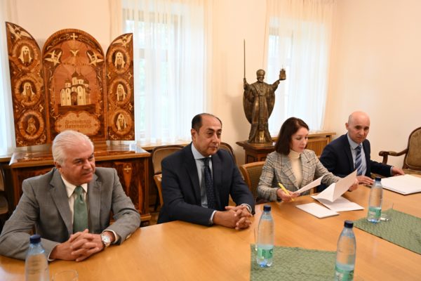 Ο Μητροπολίτης κ. Ιλαρίων καλωσόρισε τον προσκεκλημένο και τη συνοδεία του στην έδρα του ΤΕΕΣ.