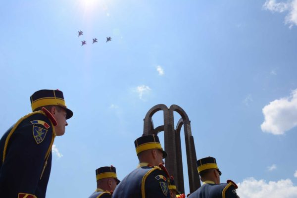 Η τελετή τελείωσε με την πτήση του μνημείου από αεροσκάφη της Ρουμανικής Πολεμικής Αεροπορίας.