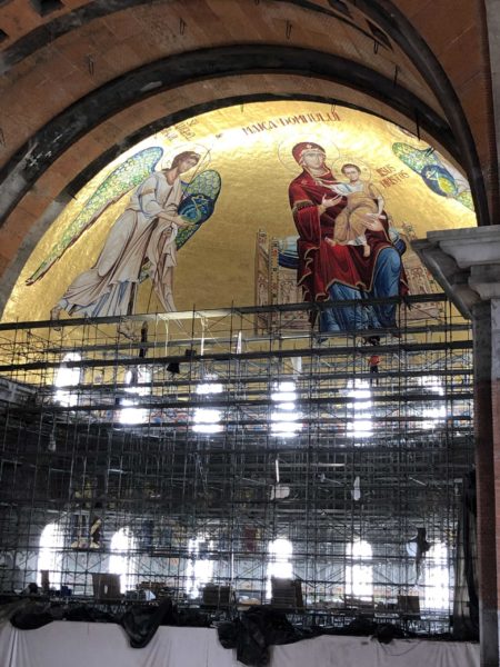 Τα πιο δύσκολα εικονογραφικά έργα, αυτά που βρίσκονται στον θόλο, έχουν ολοκληρωθεί, αλλά οι εργασίες στο βωμό θα συνεχιστούν μέχρι πριν από το Πάσχα. Οι ζωγράφοι πρέπει ακόμα να οριστικοποιήσουν τα διακοσμητικά μοτίβα κάτω από το θόλο της Πλατυτέρας και πρέπει ακόμα να κάνουν τη ζωγραφική με την τεχνική της ψηφιδογραφίας στο πίσω μέρος του καταπετάσματος.