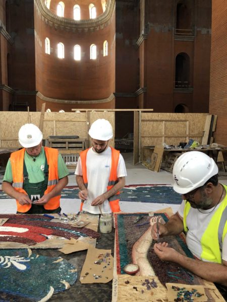 Το ψηφιδωτό που τελείωσε στο βωμό και στο τέμπλο αντιπροσωπεύει το 20% της περιοχής της ζωγραφικής του Καθεδρικού Ναού της Σωτηρίας του Έθνους: 3.000 τ.μ. επί ενός συνόλου περίπου 15.000 τ.μ.