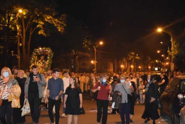Η Λιτανεία ξεκίνησε από τον Μητροπολιτικό Καθεδρικό Ναό και κατέληξε στο ίδιο σημείο, όπου στη συνέχεια τελέσθηκε Ιερά Αγρυπνία.