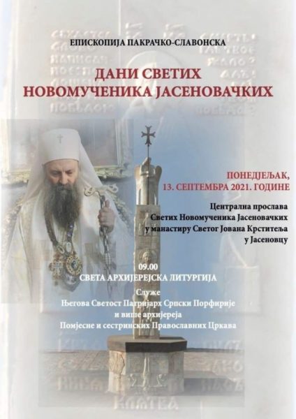 Η επισκοπή Σλαβονίας ανακοίνωσε ότι ο Πατριάρχης Σερβίας κ.κ. Πορφύριος, θα τελέσει την Πατριαρχική Θεία Λειτουργία στον Ιερό Ναό Γεννήσεως του Αγίου Ιωάννη του Προδρόμου στο Γιασένοβατς, στις 13 Σεπτεμβρίου. Την ημέρα εκείνη, όπου η Σερβική Ορθόδοξη Εκκλησία τιμά τους Αγίους Νεομάρτυρες Γιασένοβατς.