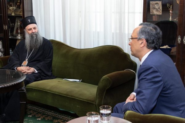 Με τον Ύπατο Αρμοστή του ΟΑΣΕ για τις εθνικές μειονότητες, Καραϊάτ Αμπραχμάνοφ, συναντήθηκε στην έδρα του Πατριαρχείου Σερβίας στο Βελιγράδι ο Πατριάρχης κ.κ. Πορφύριος.