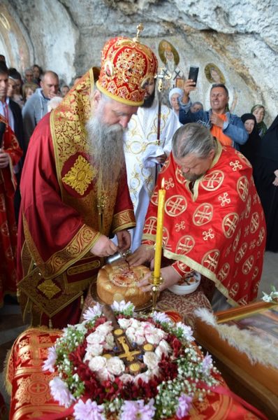 Στη σπηλαιώδη εκκλησία της Ιεράς Μονής του Άνω Όστρογκ του 17ου αιώνα, η οποία ανηγέρθη από τον Άγιο Βασίλειο του Όστρογκ, τελέστηκε η Θεία Λειτουργία επί τη εορτή της Ύψωσης του Τιμίου Σταυρού, ιερουργούντος του Σεβασμιωτάτου Μητροπολίτου Μαυροβουνίου και Παραθαλασσίας κ. Ιωαννίκιου.