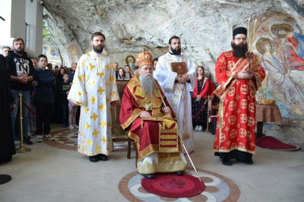 Στη σπηλαιώδη εκκλησία της Ιεράς Μονής του Άνω Όστρογκ του 17ου αιώνα, η οποία ανηγέρθη από τον Άγιο Βασίλειο του Όστρογκ, τελέστηκε η Θεία Λειτουργία επί τη εορτή της Ύψωσης του Τιμίου Σταυρού, ιερουργούντος του Σεβασμιωτάτου Μητροπολίτου Μαυροβουνίου και Παραθαλασσίας κ. Ιωαννίκιου.