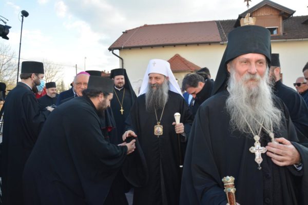 Ο Επίσκοπος Σλαβονίας κ. Ιωάννης με τους 30 περίπου Σέρβους μοναχούς υποδέχτηκαν τον νέο Πατριάρχη στην πύλη του Μοναστηριού, και τόνισε ότι η Επίσκεψη αυτή αποτελεί ύψιστη έκφρασης σημασίας που δίνει ο Μακαριώτατος στον τόπο λατρείας.