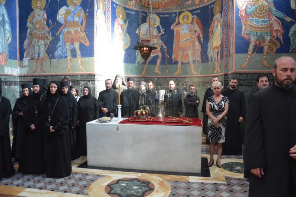 Μετά το πέρας της Θείας Λειτουργίας, πραγματοποιήθηκε επιμνημόσυνη δέηση για τον ευλογημένο βασιλιά Πέτρο Α ‘Καρατζόρτζεβιτς και ακολούθησε τελετή κατάθεσης στεφάνων στον τάφο όπου φυλάσσονται τα λείψανα του. Εκ μέρους του Προέδρου της Δημοκρατίας της Σερβίας, το στεφάνι κατέθεσε η κ. Ντάργια Κίσιτς – Τεπάφτεβιτς, Υπουργός Εργασίας και Απασχόλησης.