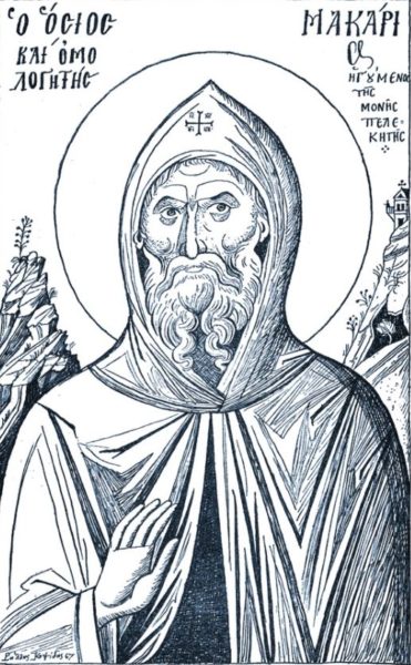Ο Όσιος Μακάριος για τους υπέρ του Ορθόδοξου φρονήματος αγώνες του και τη στερεή πίστη του φυλακίστηκε και εξορίστηκε.